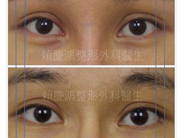 🔼🔼🔼開眼尾加上眼尾下置,眼睛比例瞬時放大不少!藍線是指出手術前後,因為眼尾延伸,眼尾變寬,整個眼睛變大的改變。(這個手術幾乎看不到傷口)