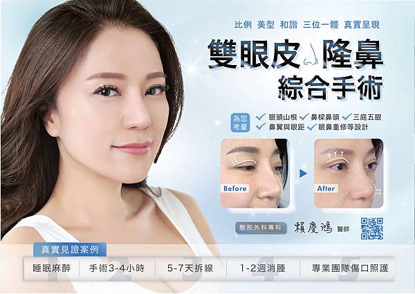 🔼🔼🔼我們的範例,您可已看到,在沒有『開眼頭』之下,光是三段式隆鼻,把鼻樑山根加高,就有眼神五官集中的效果,所以這時,若是還要加上開眼頭手術,就要仔細與醫生討論您術後改變的程度。
